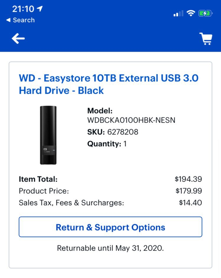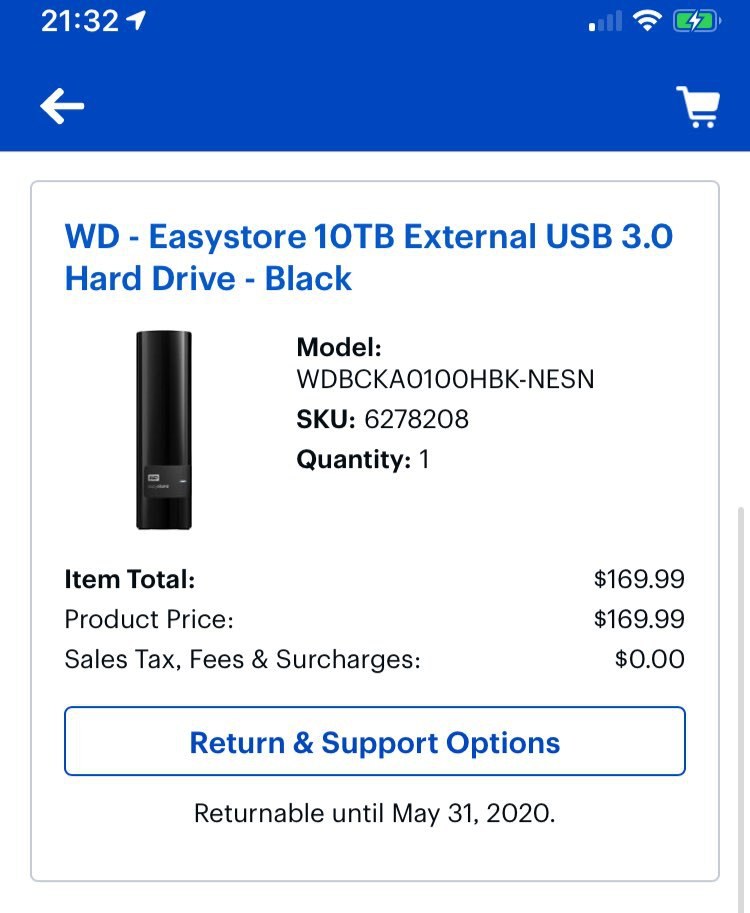 提前说一下, 这一波亏了, 买的是 10tb 的 WD easystore