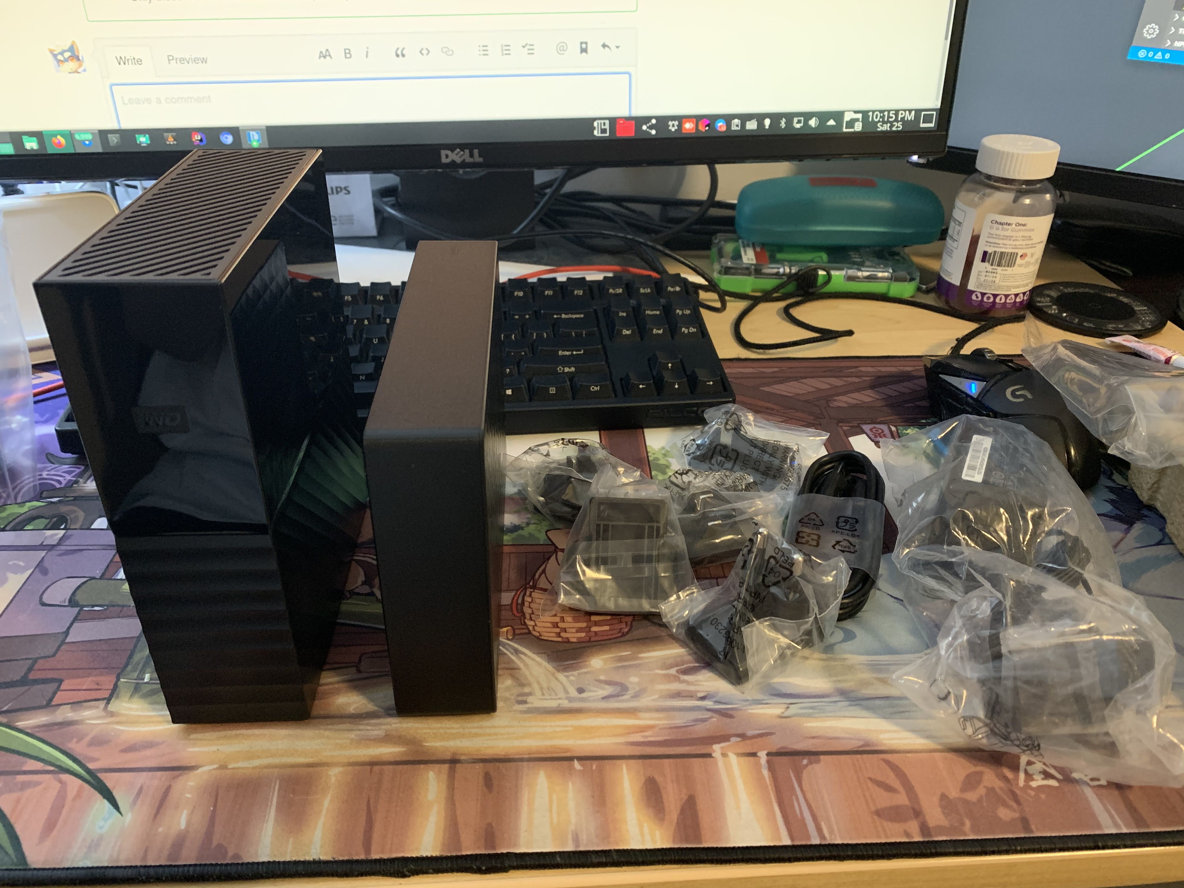 再然后, 我趁着 Dell 打折的时候, 300 刀左右入了一台T40. 具体这个东西的后续(咕了). 因为这东西标配的是一块1tb的西数蓝盘, 除此之外还有额外的两个硬盘位, 星际蜗牛四盘+T40 三盘一共七块盘