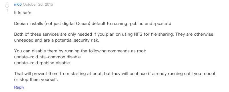 有点意思,看了一下这里:https://www.digitalocean.com/community/questions/is-it-safe-to-remove-rpcbind